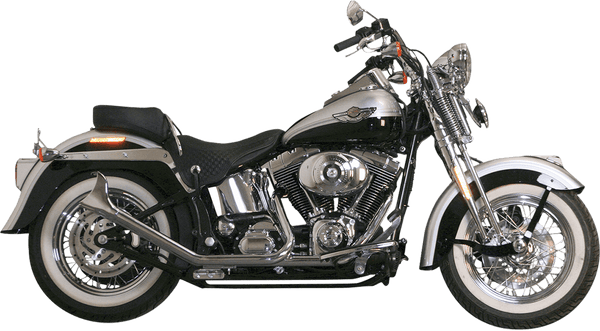 Features a side-by-side design that is old-school cool. These unbaffled pipe sets will give your bike the deep growl only Fishtails can provide. They have both 12mm and 18mm O2 sensor bungs and block-off plugs to fit all late-model bikes, and include special mounting brackets. Available in chrome or high-heat black powderpaint. Optional 2 1/4in. heat shield sets are sold separately. Made in the USA.