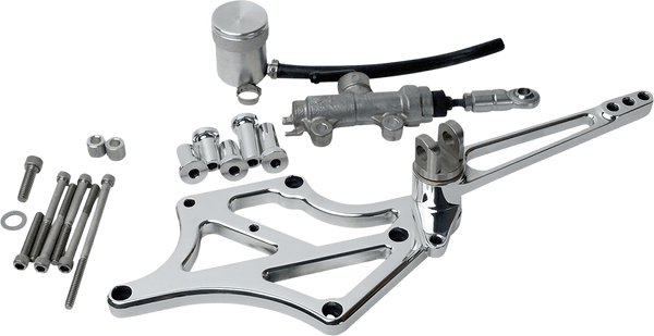Complete bolt-on mid-controls for the more aggressive rider. More ground clearance for the performance minded. Easy bolt-on design; will require some minor modifications. Requires new brake line and relocation of the brake light switch. Available in black anodize or polished finish. Available with or without speedpegs. Made in the u. s. a. NOTE: Will not work with OEM exhausts, or some aftermarket exhausts; will require a custom or specific aftermarket exhaust system.